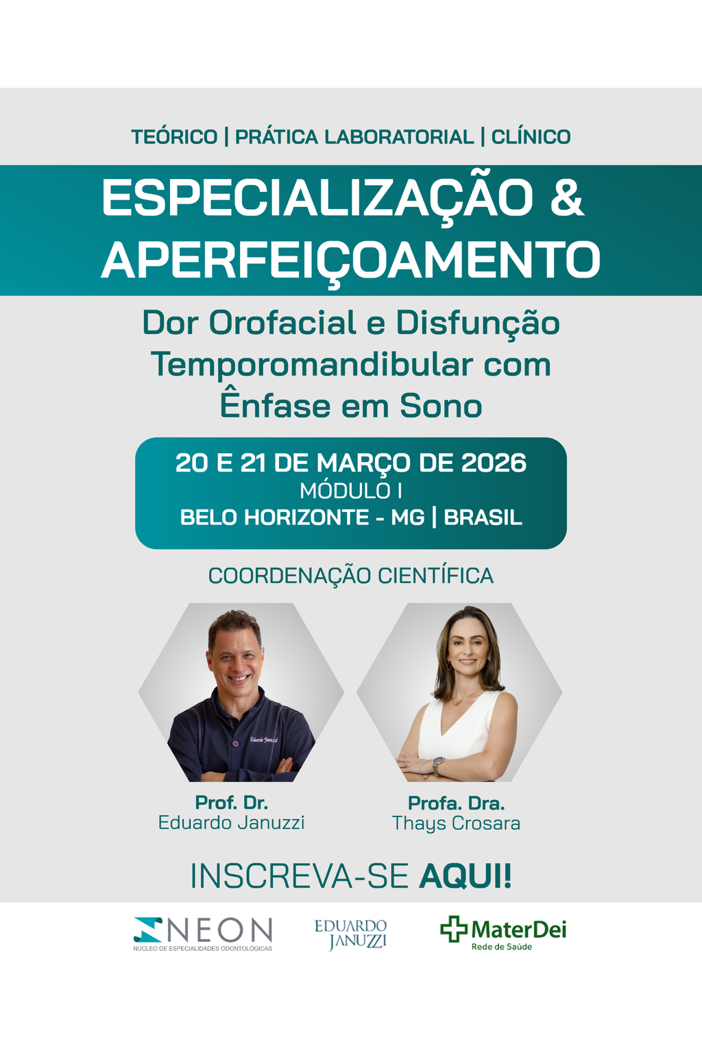 Estão abertas as vagas para a nova turma de Pós-Graduação, Especialização e Aperfeiçoamento em Dor Orofacial e Disfunção Temporomandibular com Ênfase em Sono, promovido pela Neon Cursos em parceria com o Hospital Mater Dei – Rede de Saúde.